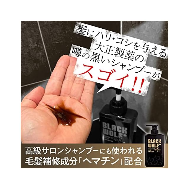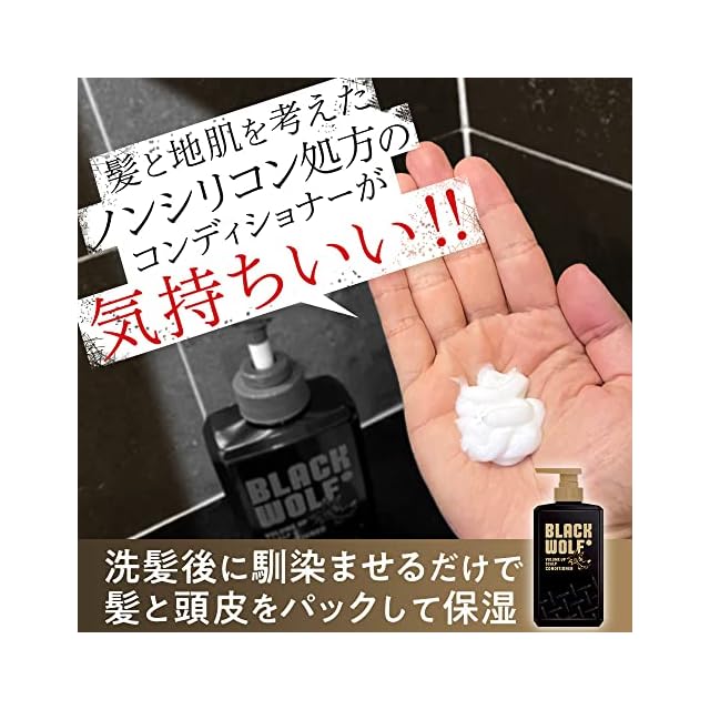 BLACK WOLF(ブラックウルフ) 【噂の黒いシャンプー:ヘマチン(毛髪補修成分)配合】ブラックウルフ ボリュームアップ スカルプ シャンプー&コンディショナー + スカルプエッセンス(サンプル)付 限定品 3個アソート