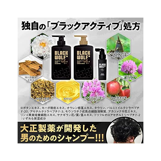 数量限定企画品(ブラックウルフ ボリュームアップ スカルプシャンプー&コンディショナー&スカルプエッセンス(サンプル)付