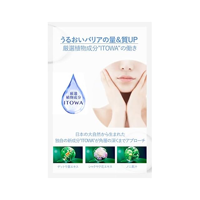 日本の大自然から生まれた独自成分「ITOWA」配合。和漢植物をはじめとした植物由来成分を贅沢につめこみ、うるおいバリアの量と質を上げることで肌あれを防ぎ、環境トラブルにも負けない、健やかな肌を保ちます。