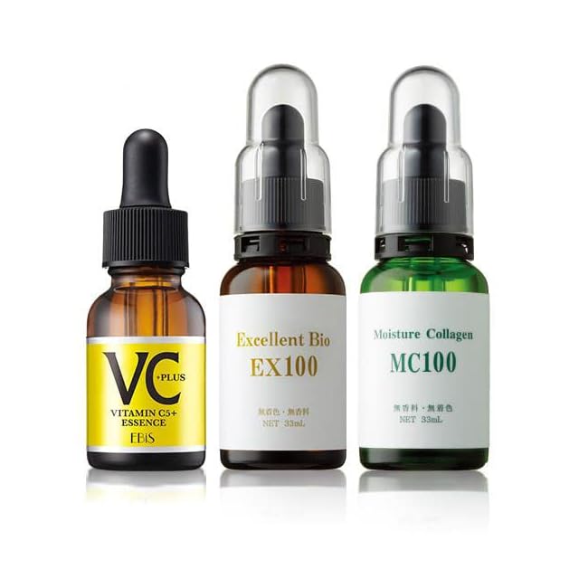 ✅使い方順序:VC5+PLUS→EX100→MC100の順番で別々に手のひらにとり、順に重ねて直接顔全体になじませます。