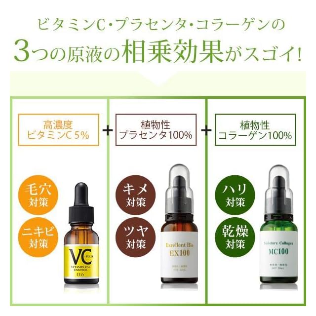 ✅ビタミンC誘導体、植物性プラセンタ様、コラーゲンの3つの原液の相乗効果がスゴイ!