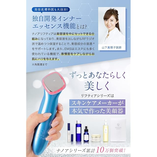 ✅NANOAリフティアは、年齢肌や乾燥が気になる‥そんなあなたのために美容皮膚科医と共同開発したプレミアムリフトアップ導入美顔器です。イオン導入、EMS、RFラジオ派、赤色LED、青色LED、高周波振動の機能を搭載しています。