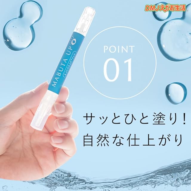 ✅皮膜式二重ライナーとしての使い方:皮脂や汚れを落とした後、メイク前に使用します。目を閉じて二重にしたいラインに美容液を塗布し、しっかり乾燥させてください。乾くまで目を開けないようにします。乾燥により見えない膜が形成され、自然なふたえが完成します。美容液は透明ですが塗布量が多いとマブタが光ることがありますので、よく伸ばして薄く塗布するようにしてください。テカリが気になる場合は、アイメイクしてください。