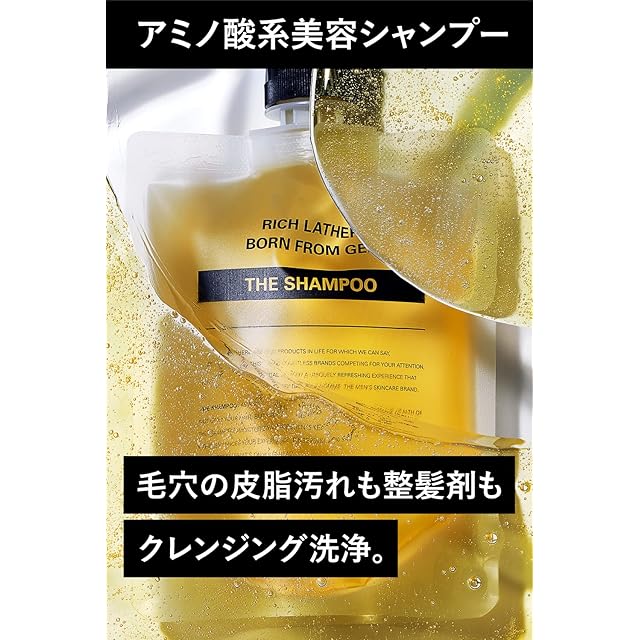 【THE SHAMPOO】素早い泡立ち、汚れをしっかり絡め取る濃密な泡質、少量でも根こそぎ汚れを落とすほどの洗浄力、泡切れの良さ、頭皮と髪への優しさ、これら全てに満足するシャンプーを目指して開発しました。