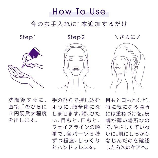 洗顔後、いつものスキンケアの最初にプラスするだけの簡単ステップで美肌ケアが完了。
