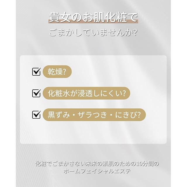 【上品なプレゼント・男女兼用】人間工学に基づいたデザインで、コントラストの美しい色組み合わせも高級感が溢れるので、両親、彼女、彼氏など大切な人へのプレゼントとして最適。誕生日プレゼント、新年ギフト、賞品などもお勧めです!また、本製品は安定したベースが付き、付属のType-C充電ケーブルを使用して、いつでもどこでも迅速に充電できます。製品の重量はわずか239gとコンパクトで、バッグに入れて持ち運びが非常に便利です。お宅だけでなく、旅行先や出張先、更に海外でも手軽にスキンケアできます。
