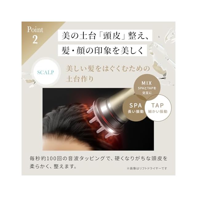 振動ヘッド。ニードルの刺激とやさしい温風で、美しく健康な髪が生える頭皮へ。 "