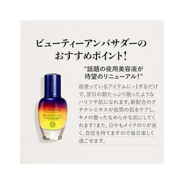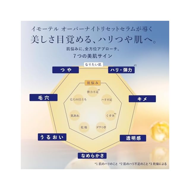 イモーテル オーバーナイトリセットセラム(夜用美容液)のレフィル(詰め替え用) 肌がゆらぎがちな季節の変わり目にもたっぷり眠った翌朝のようなツヤのある肌へ。