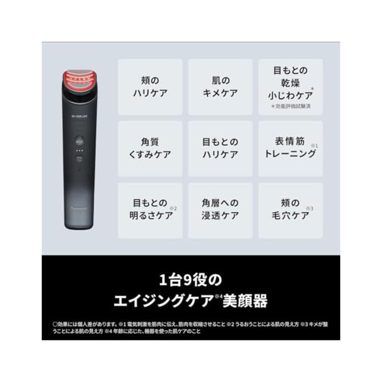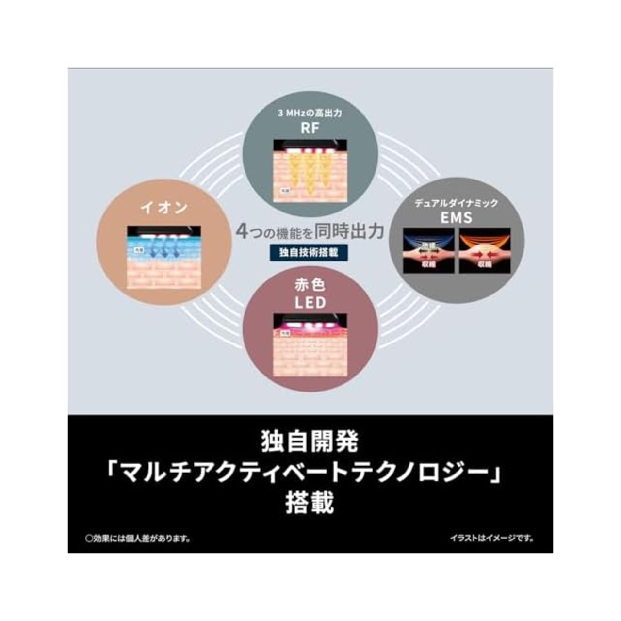 エイジングケア研究から生まれた3MHzのパナソニック史上最高出力RF、デュアルダイナミックEMS、さらにLEDとイオンを加えた4つの機能を搭載