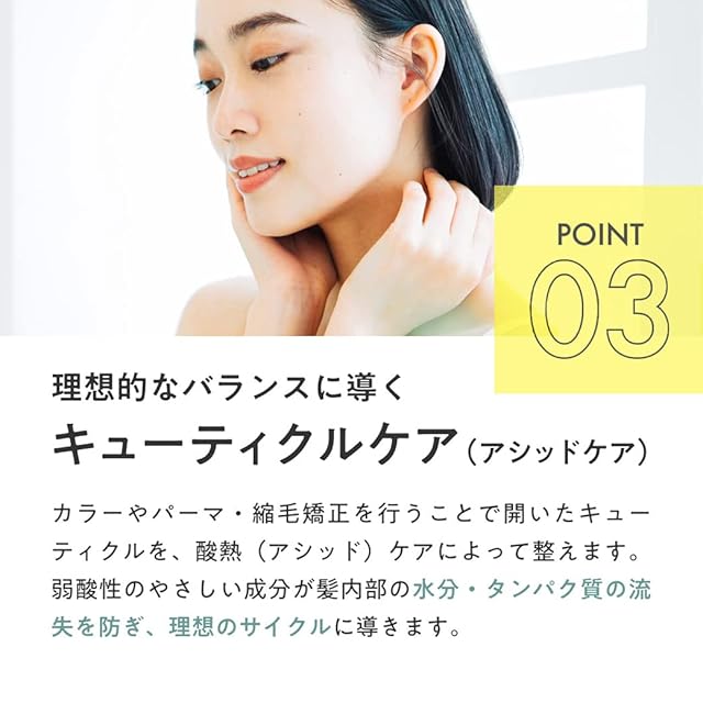 酸熱トリートメントケア。レブリン酸配合で、髪に弾力と柔らかさを与えるトリートメント。