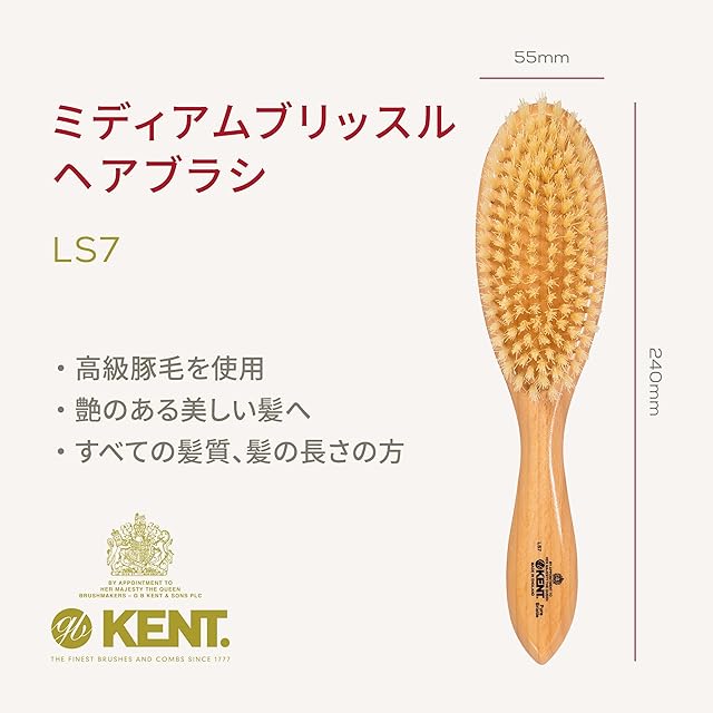 GB KENT ケント 英国王室御用達 高級 豚毛ヘアブラシミディアムボアブリッスル ヘアブラシ 高級ブラシ 頭皮マッサージ 静電気抑制 木製 サラサラ ツヤ 艶 イギリス製 LS7