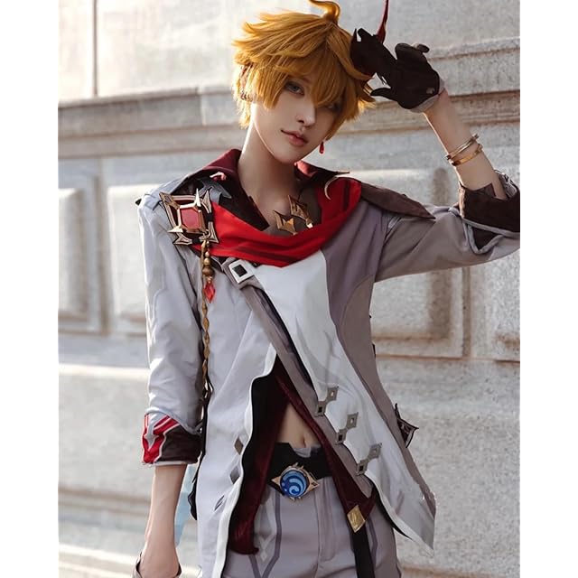 [神併良品] アヤックス コスプレ ウィッグ付き ファデュイ 原神 コスプレ衣装 フルセット コスチューム 大人用 仮装 文化祭 Genshin Ajax cosplay (アヤックス ウィッグ付き,L) | つむぎ屋