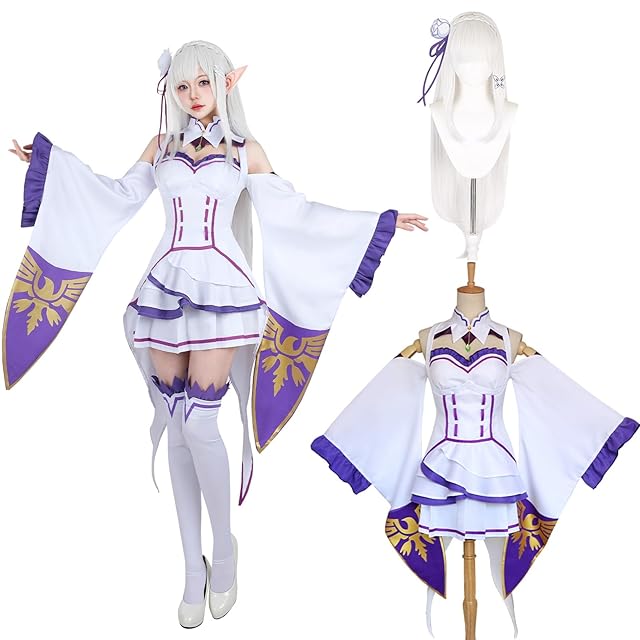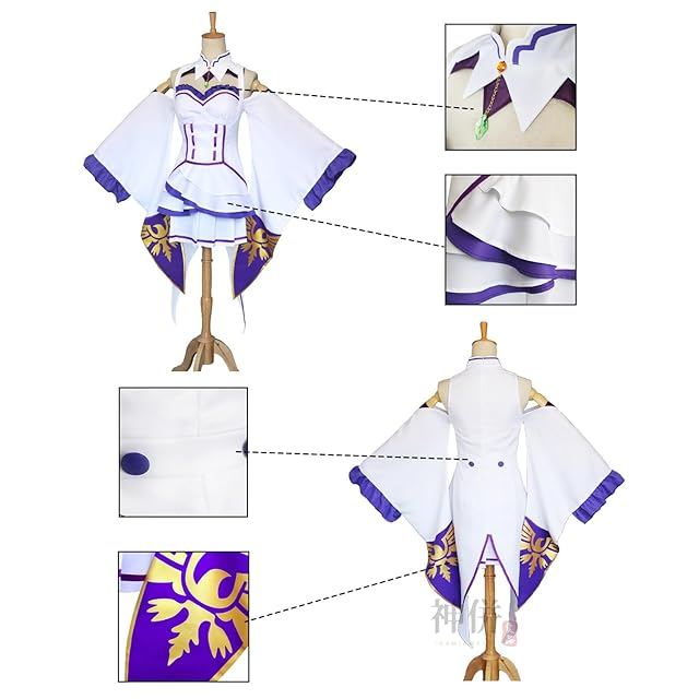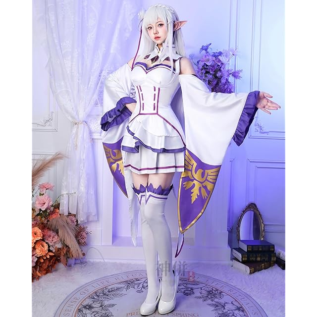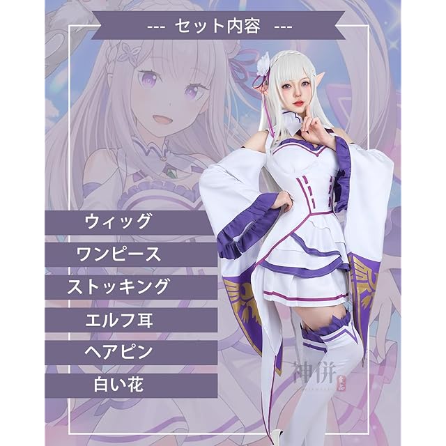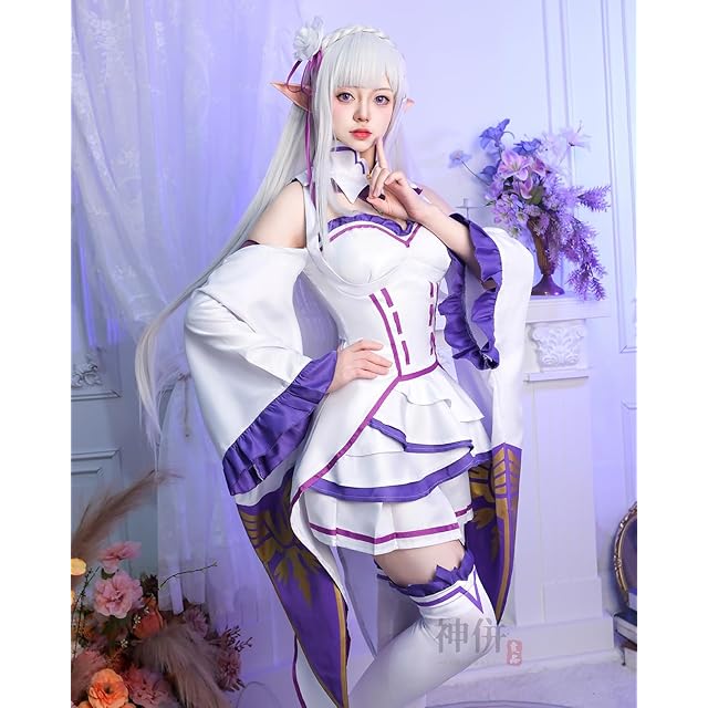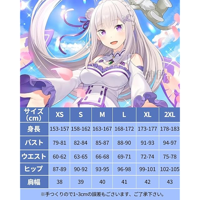 [神併良品] エミリア コスプレ ウィッグ付き 精霊術師 Reゼロ コスプレ衣装 大人用 仮装 文化祭 イベント コスチューム ステージ服 Emilia cosplay (エミリア ウィッグ付き, XXL) | つむぎ屋