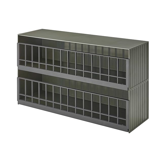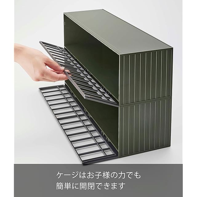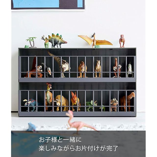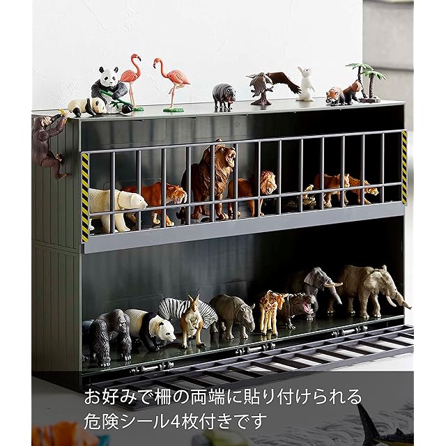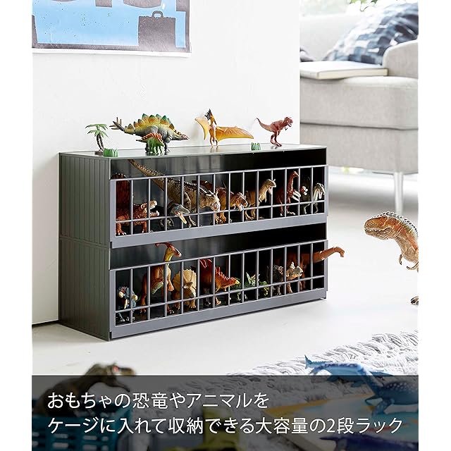 山崎実業(Yamazaki) 恐竜 & アニマル収納 ケージ ワイド 2段 サファリグリーン 約W45XD14.5XH26.5cm タワー tower フィギュアケース コレクションケース 5809 | つむぎ屋