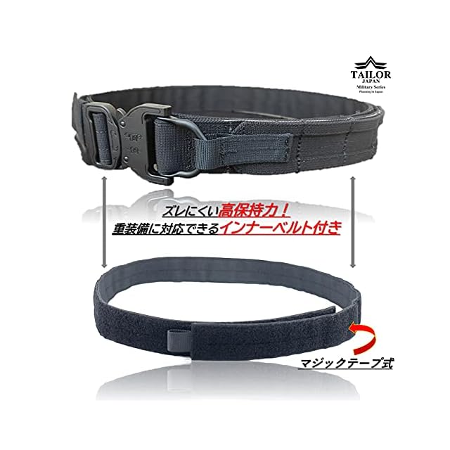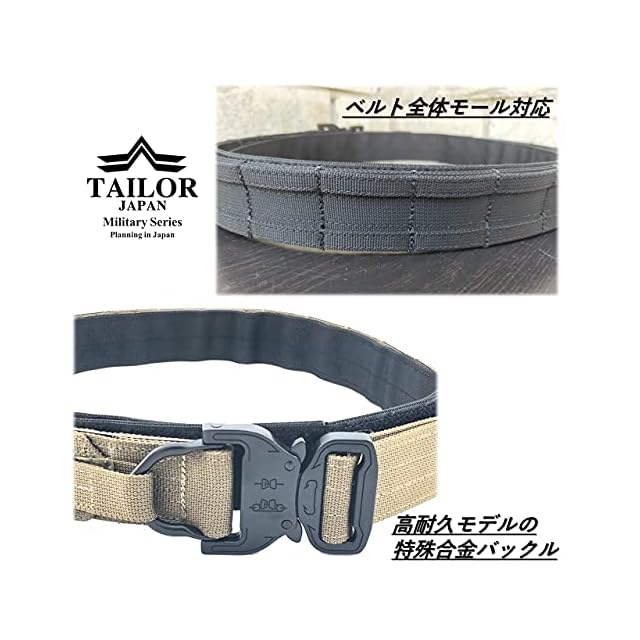 [TAILOR JAPAN] デューティーベルト ガンファイターベルト サバゲーベルト タクティカルベルト インナーベルト付き ガンベルト モールベルト コブラバックル 実物素材 タンカラー FDE (ブラウン, L) | つむぎ屋