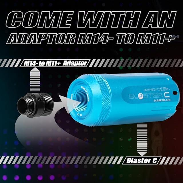 特徴:ネジ規格は14mm逆ネジ(CCW)、11mmアダプター(M14- to M11+)付属。対応するトイシューティングデバイスのバレルアタッチメントとして使用可能。