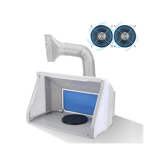 Anesty 塗装ブース ダブル強力フアン エアーブラシ用塗装ブース LEDライト 延長用ダクトホース付 スプレーブース セット 収納可能 スプレーブース 回転プレートが付く作業スペース 2層のフィルター ホビー塗装用