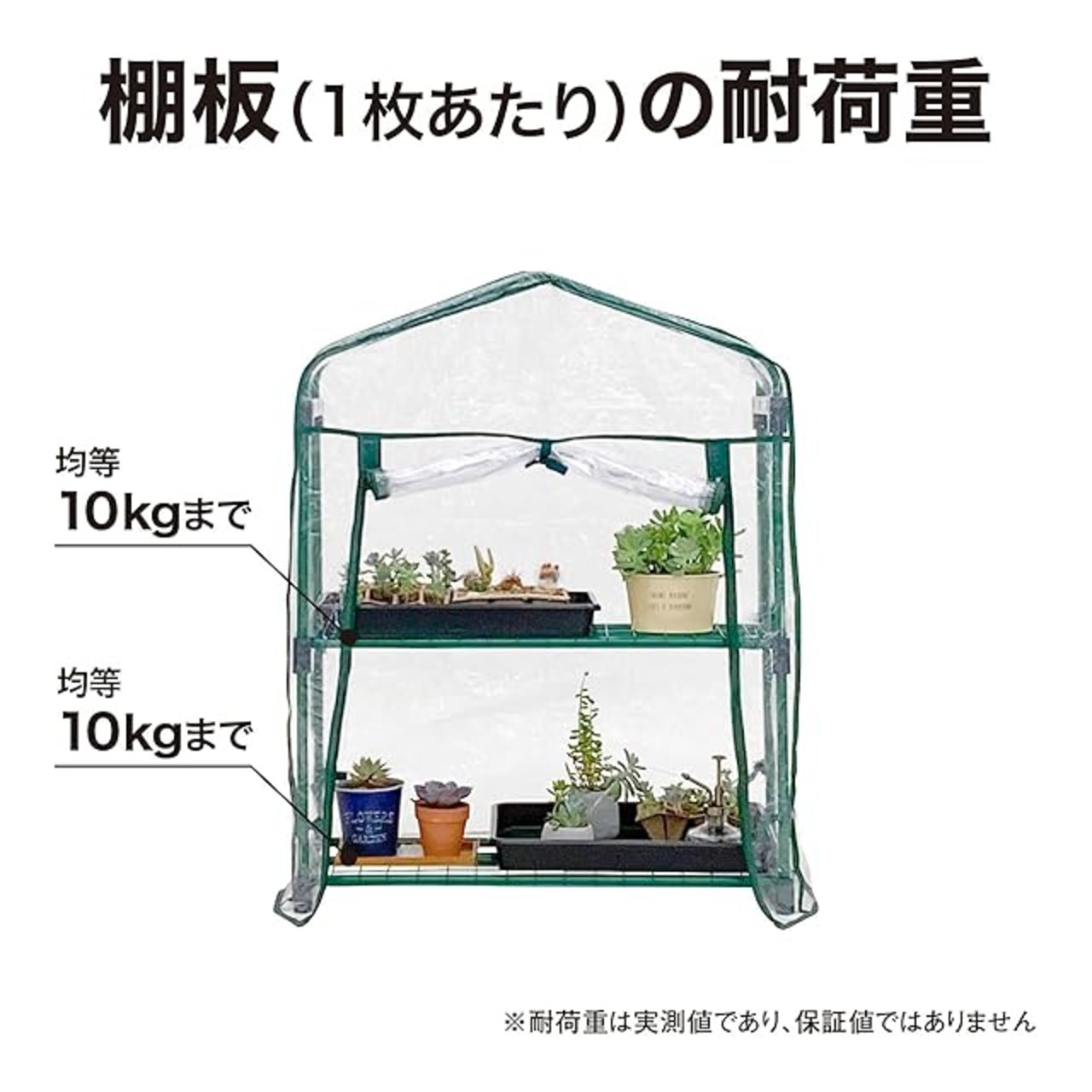 サイズ: 幅69cm×奥行49cm×高さ92cmのコンパクトな2段温室で、限られたスペースでも効率的な栽培が可能です。