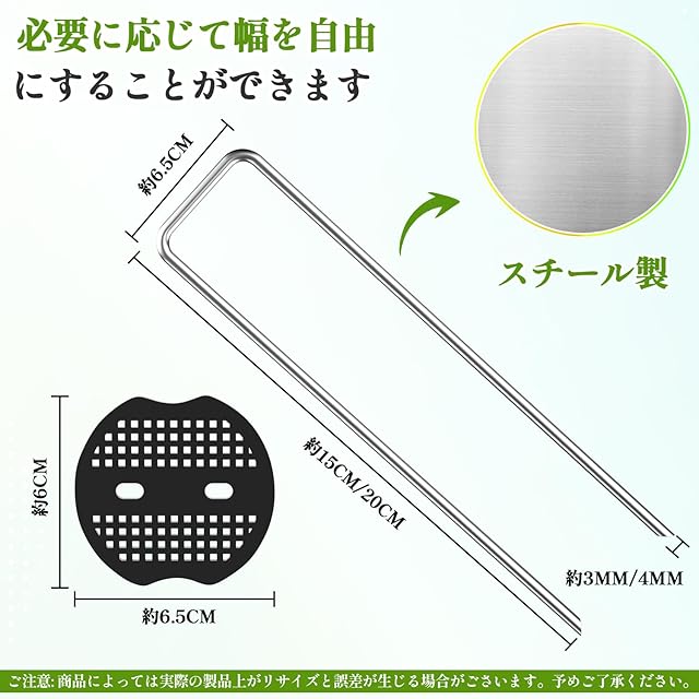 【取付簡単】u字ピン先端には鋭くきれいな角度の切れ込みがあり、芝生、防草シート、ビニールシート、重い土などを簡単に素早く貫通させることができます。手やハンマーなどで土に差し込むことができます。再利用できますので、使用した固定ピンを清潔にして保存し、次回の使用に備えます。ご注意:先端が尖ってます。怪我を防止するため開封または設置の際、必ず手袋を着用ください。