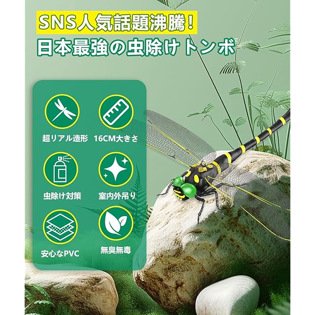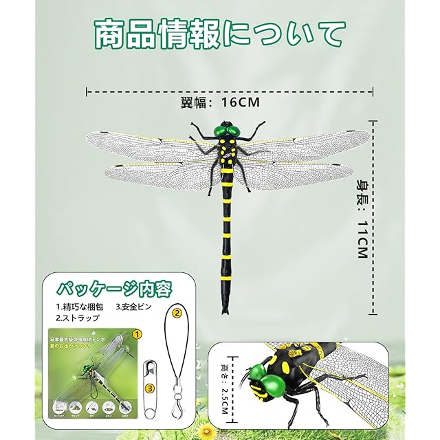 2025年新型「市販最大 オニトンボ16センチ」虫除けとんぼ リアル 虫除け対策 肉食トンボ 耐久性PVC素材 安全ピン付きストラップ付き 釣り 室内装飾 ベランダ 網戸 室内 登山 渓流釣り キャンプ アウトドアに対応 (16cm-1匹) | つむぎ屋