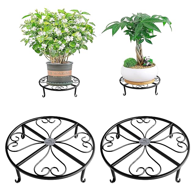 BOLESKA 2個組 直径30CM 花台 アイアン フラワースタンド 観葉植物 スタンド 植木鉢台 猫脚付鉢置き プレート 飾り台 ガーデニング アンティーク 室内 屋外 おしゃれ (直径30CM-ブラック) | つむぎ屋