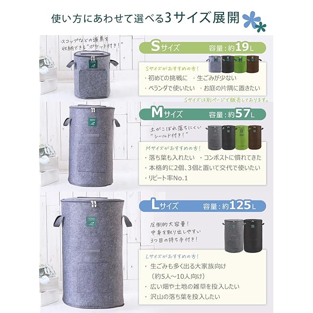 ✅【不織布生地のメリット】 プラスチック製と比べて通気性・排水性に優れており、発酵がスムーズに進みます。余分な湿気を逃がすことで臭いやカビを防ぎ、快適に長く使用できます。また軽くて柔らかいので持ち運びや収納も簡単です。