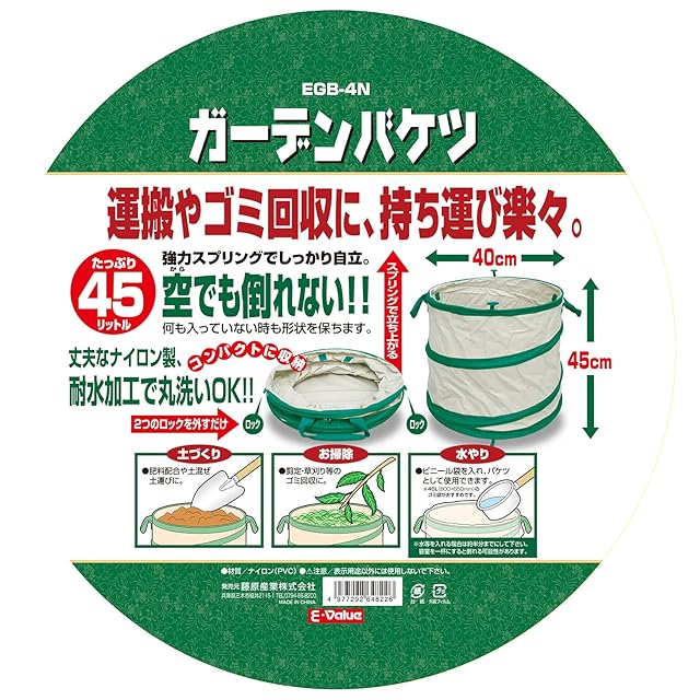 特徴:自立可能で収納もコンパクト、園芸道具の持ち運びや道具入れに便利