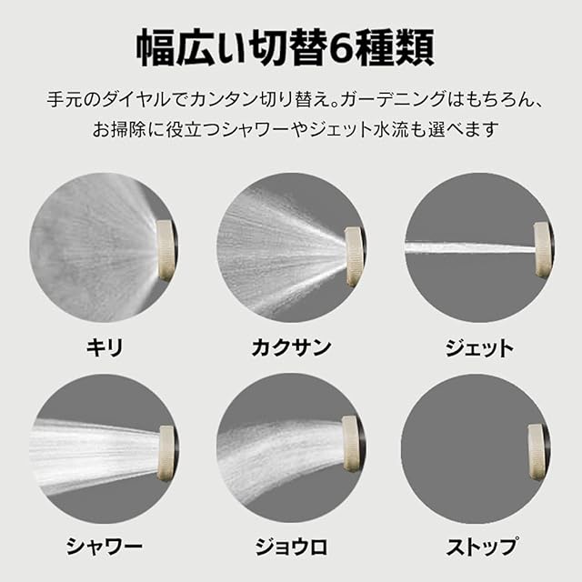 水流パターン:キリ、カクサン、ジェット、シャワー、ジョーロ、ストップ