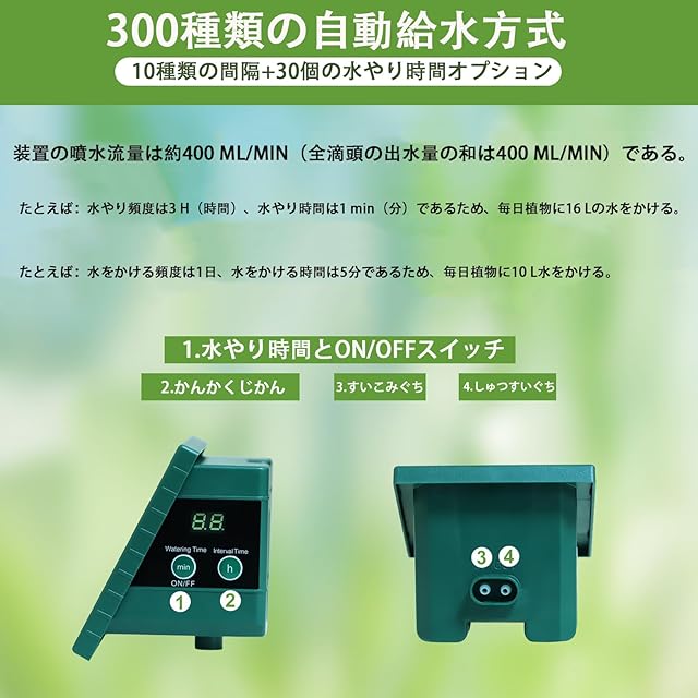 300種類の自動水やりモード:水やり時間は1/2/3…29/30分、水やり頻度は3時間/6時間/12時間/1日/2日/3日。。7日間、300種類の水やりモデルがあなたのすべての水やりニーズを満たすことができます。従来の点滴水やりに比べて、無数の点滴水やりモデルが増加し、より科学的で実用的なだけでなく、大量の水資源を節約した。
