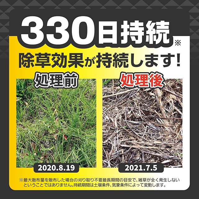 約11ヶ月除草効果が持続します。繁茂した雑草も根まで徹底除草。