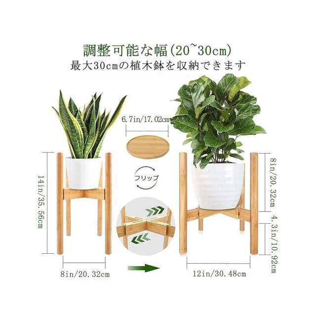 調整可能: 注意:幅を調整できる設計のため、フラワースタンドが多少揺れることがありますが、これは通常の現象です。耐荷重は問題ありません。 鉢スタンドの幅が20から30 cmまで調整可能で、庭だけでなくベランダでも使用しやすいアイテムです