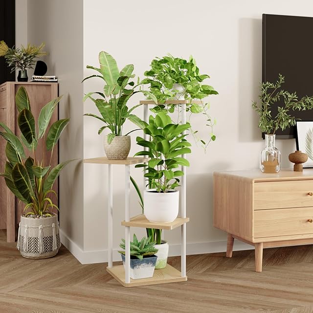 ファッショナブルなデザイン:この花台は美しい造作が、庭園のような豊かな植物の層を演出しつつ、各鉢植えが十分な日差しを確保できる構造となっています