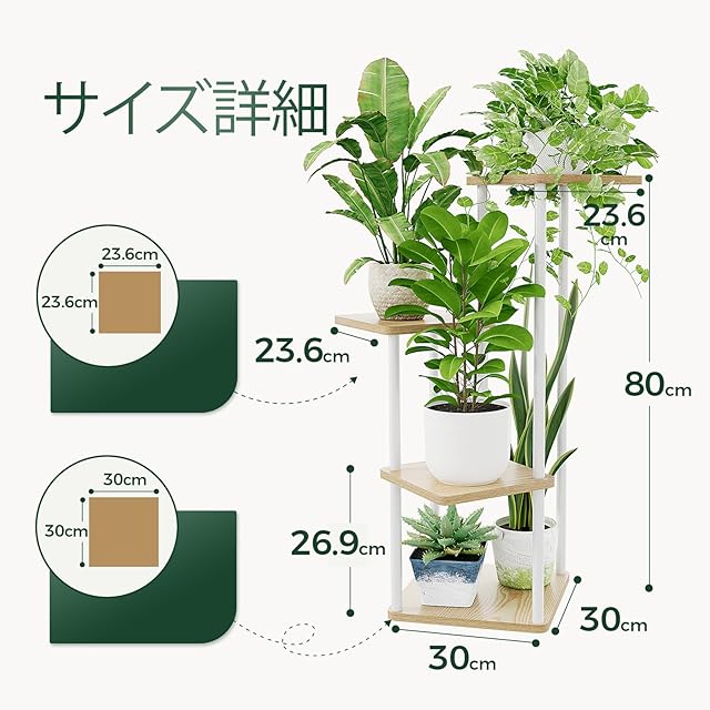 コンパクト空間に最適:全体幅縦47cm×横47cm×高さ106.7cmの5段植木鉢スタンドは、壁隅やキャビネット横にスムーズに配置可能なコンパクトデザイン。多層構造により植物の収容量を最大化し、狭い空間でも緑豊かなインテリアを実現します