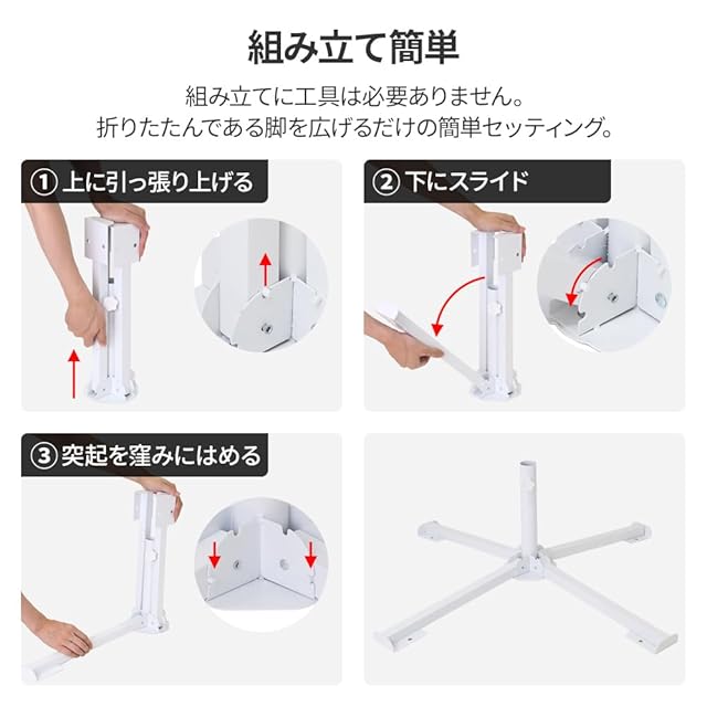 ◆組み立て簡単/組み立てに工具は必要ありません。折りたたんである脚を広げるだけの簡単セッティング。