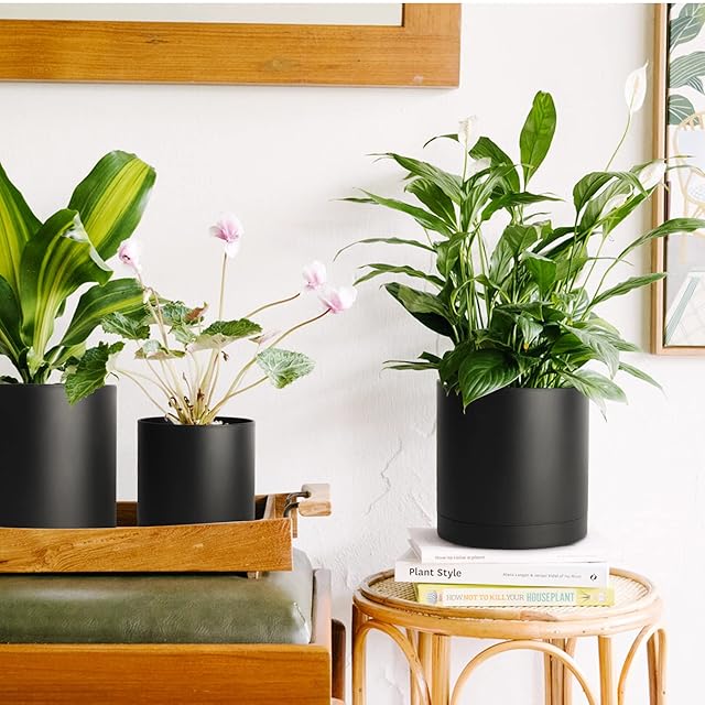 「パッケージ内容」:プラスチック製植木鉢×4(異なるサイズ);受け皿×4。下記は植木鉢の各サイズです。特大植木鉢:17.5cm×18cm(直径x高さ)。大きい植木鉢:15cm×16cm(直径×高さ)。中サイズ植木鉢:12.5cm×13.2cm(直径×高さ)。小サイズ植木鉢:10cm×11cm(直径×高さ)。色:黒色。注意事項:植物がパッケージには含まれません。ご注意ください。