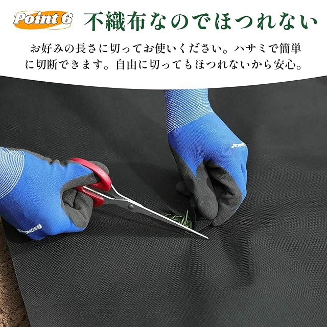 【簡単施工でDIY初心者もプロの仕上がり!幅広い用途に対応】ハサミやカッターで驚くほどスムーズにカット・加工が可能。DIYが初めての方でも、プロ顔負けの仕上がりを簡単に実現できます。庭、駐車場、アプローチ、砂利道の下、家庭菜園、ウッドデッキの下、傾斜地など、あらゆる場所の頑固な雑草対策に最適。施工後のメンテナンスも最小限で、手間いらずです。万が一、ご使用中にご不明な点がございましたら、お気軽にお問い合わせください。★お問い合わせ:注文履歴>出品者へ連絡>お問い合わせ内容をご記入ください。