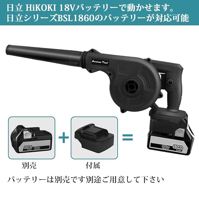 アルチザンツール【日本ブランド】充電式ブロワー 18V日立ハイコーキ BSL1860 BSL36A18バッテリー使用可能アダプター付き コードレスブロワー 電動工具 充電式 コードレス 集じん機能付き 集塵 掃除機 充電器とバッテリー別売 本体のみ (黒色(日立用)) | つむぎ屋