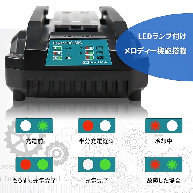▶▶【VANKO DC18RC充電器】入電圧:100ー260V 入力周波数:50ー60Hz 出力電圧:直流7.2-18v 出力電流:直流3A適合 マキタ バッテリー BL1815N BL1830B BL1850B BL1860B BL1415N BL1430B BL1460B など充電可能です。充電完了メロディ付きます。高い冷却効率:冷却属の流れを最適化することで、全てのバッテリセルを効率よく均一に冷却します。バッテリー状態を診断:高温、満充電後の再充電、過放電など。【付き】弊店では1年間付きを提供しております。もし、製品には何か問題あれば、お気兼ねなくお問い合わせください。