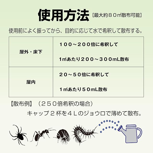 標準倍率 250倍希釈で広範囲の害虫に使える