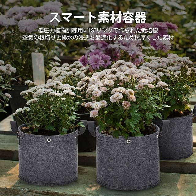 【通気性、透水性が良い】製品は不織布製ですだから通気性、透水性が良い!側面・底面全体から水がしみだして、根腐れの心配がありません。植物にとって、水分と栄養を吸収しやすいです、植物の生存率を改善できます。