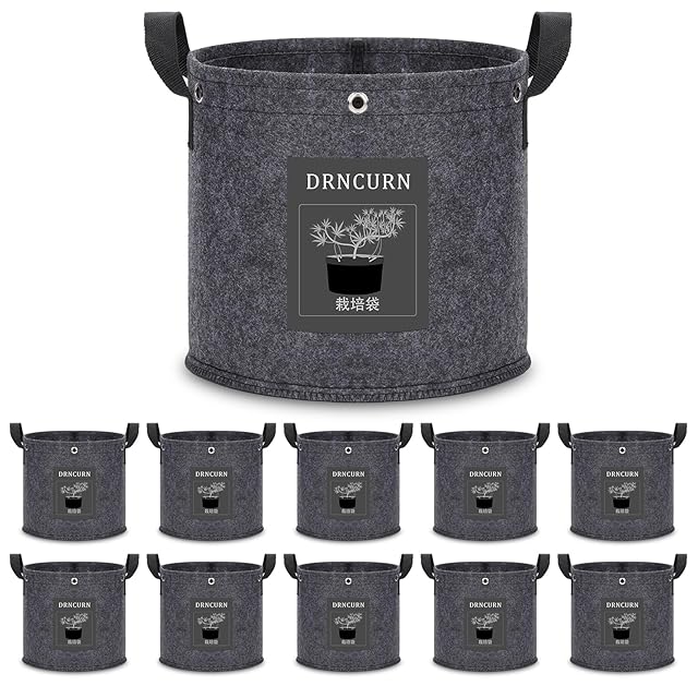 不織布 プランター 1ガロン 10枚セット ハンドル付き 320G厚手不織布ポット 植木鉢 大型 布鉢 布袋 フェルト 家庭菜園 プランター 野菜 育苗 園芸 LSTリング付き 低圧力植物訓練用 ((幅18×高15cm))