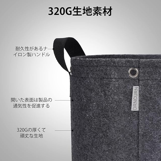 【低圧力植物ト訓練 商品情報】320G不織布、30ガロン 5枚セット(幅60×高40cm)、DRNCURN不織布プランターは金属リングを内蔵しており、訓練垂直方向の成長ではなく水平方向の成長を促進し、植物全体の空気循環を改善し、カビや害虫の侵入のリスクを軽減し、均一な配光を確保することで、収穫量アップも期待できます。