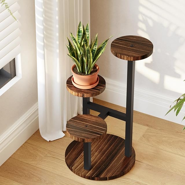 耐久性とスタイルの融合:金属ブラケットと温かみのある円形トレイで作られたプランターラックは、耐久性とデザイン性で際立ちます。木と金属の強固な組み合わせが、愛する植物のための堅固な基盤を提供します