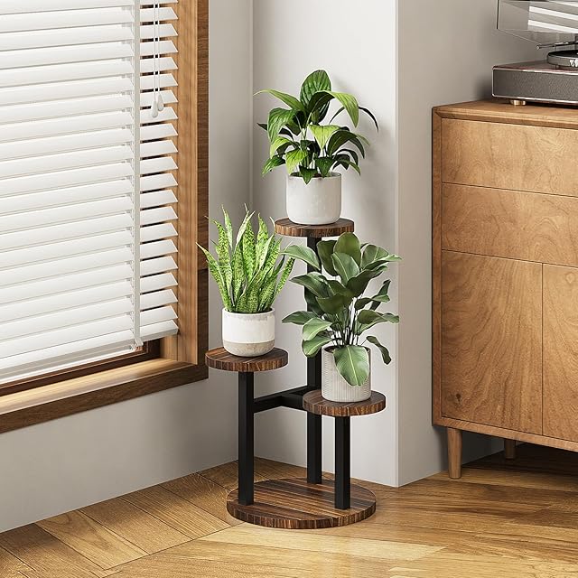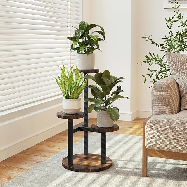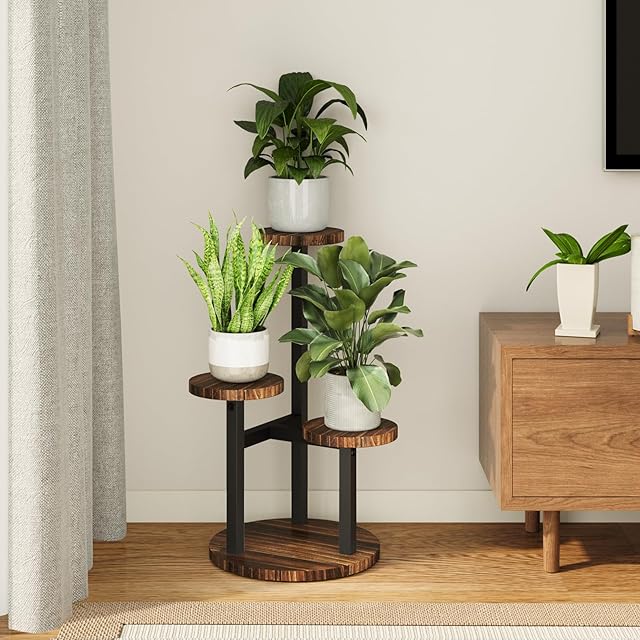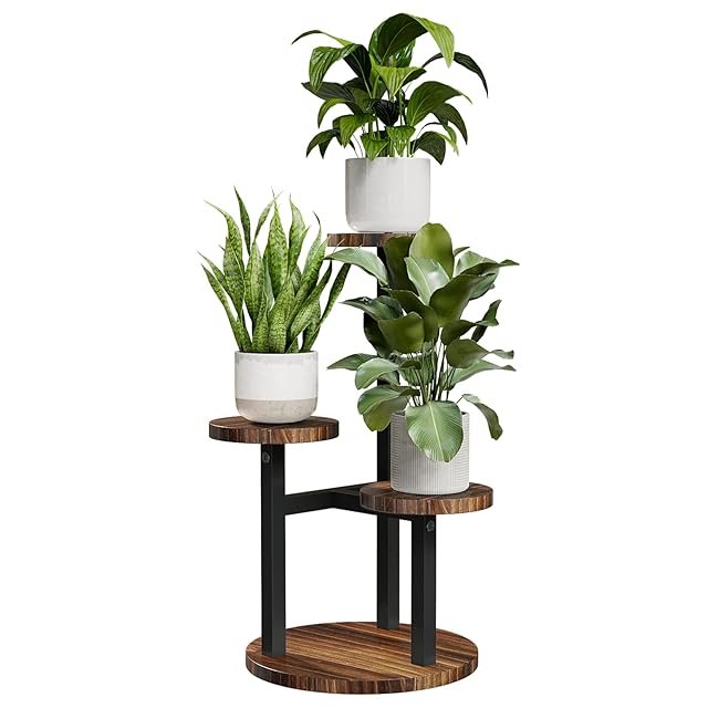 Bamworld フラワースタンド 室内 3段花台 プランタースタンド コンパクト観葉植物台 おしゃれ植木鉢台 植木鉢スタンド リビング 寝室 ベランダ