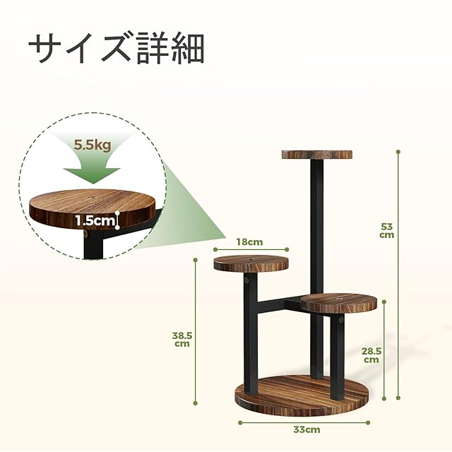 コンパクト空間に最適:縦32.7cm×横32.7cm×高さ53cmの3段植物 棚が小空間救世主。コーナー対応スリムデザインで、バルコニーやリビングのデコに最適