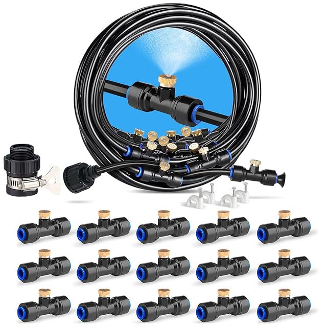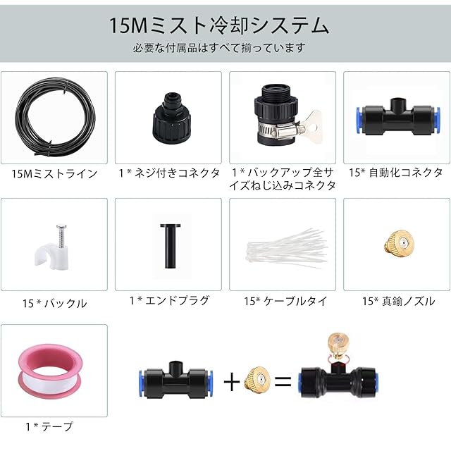 Menetop 噴霧ノズルミストシャワー 屋外 ミストノズル スプリンクラー 散水ノズル ドリップ 節水 熱中症対策 水やり プール 植物 盆栽用 家庭園芸 温室加湿 ガーデン ほこりの除去 (15M) | つむぎ屋