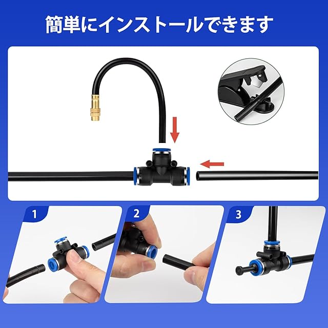 高品質の素材、耐高温性、真鍮製ノズル、耐久性、防爆性、防錆性、そして高密度噴霧。水量が多いほど効果は高まります。この軟水管の内径は6mm、外径は8mmです。