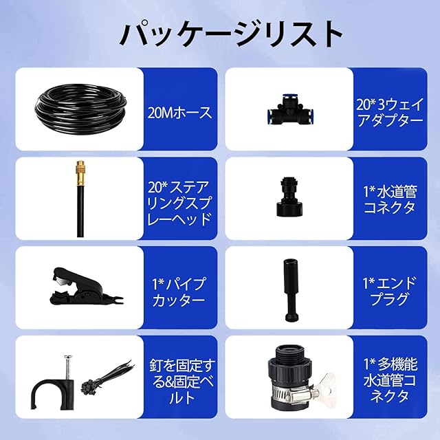 広く使用されている強力な互換性、自動灌漑キットは、霧化、芝生の灌漑、パティオ、屋根の冷却、農業、野菜、温室、花壇、スイミングプールのミスト霧冷却灌漑などに最適です。