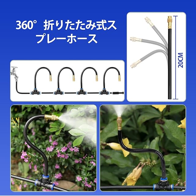 Menetop 噴霧ノズルミストシャワー 屋外 10M ミストノズル 360°曲げ可能な点滴灌漑キットガーデン用自動灌漑システム、温室、庭、芝生、植物用の調節可能なガーデン散水ミストシステム (10) | つむぎ屋