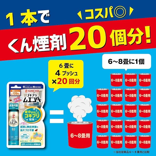 【特徴】煙じゃないのに煙の効き目。次世代型ゴキブリ駆除剤。80プッシュ